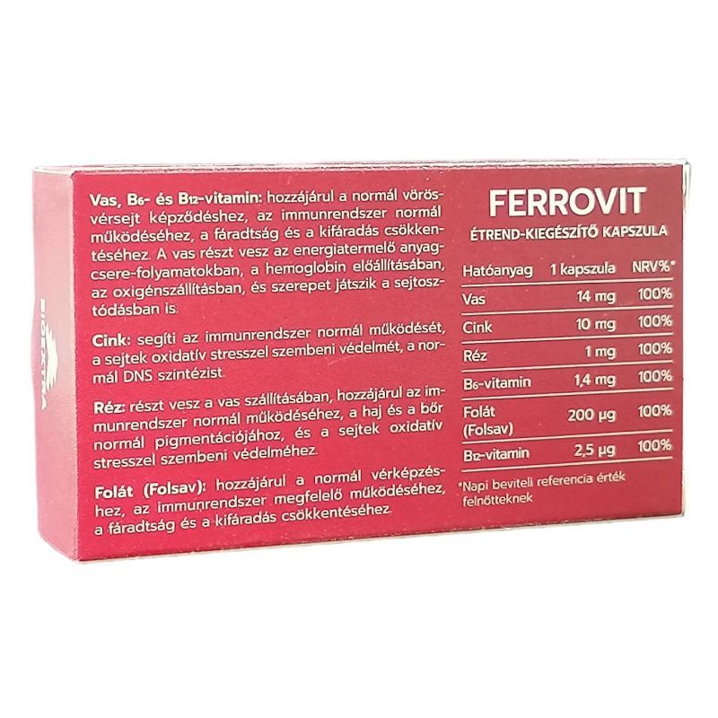 A vas esszenciális mikroelem, vagyis szervezetünk nem képes annak előállítására. Ezért a vasat a táplálkozással, kívülről kell pótolnunk. Mivel a vas felszívódása és biohasznosulása rendkívül rossz, a vérbe csak a táplálékban található vasmennyiség töredéke kerül be, hogy aztán eljusson azokra a helyekre, ahol szükség van rá. A szervezet számára könnyen hasznosítható szerves vasat, cinket, rezet és B vitaminokat tartalmazó étrend-kiegészítő készítmény. Napi egy kapszula biztosítja a felnőtteknek ajánlott napi B6- és B12-vitamin-, vas-, cink-, réz-, folsavbevitel 100%-át!