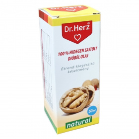 A Dr.Herz® 100% hidegen sajtolt dióbél olaj természetes alapanyagból, kiváló minőségű, hígítatlan olajként készült, mely a hidegen sajtolásnak köszönhetően megőrzi természetes összetevőit. A termék naponta egy teáskanál adagban fogyasztandó, étkezés közben vagy salátákhoz keverve, elősegítve az egészséges étrend kialakítását. A készítmény kizárólag eredeti dióbél olajat tartalmaz, és tárolását hűvös, fénytől védett helyen javasolt biztosítani. Az étrend-kiegészítő nem helyettesíti a változatos, kiegyensúlyozott étrendet és nem alkalmas gyermekek, valamint terhes és szoptató anyák számára.