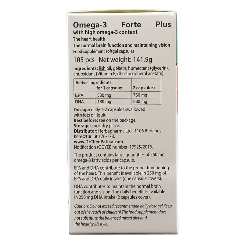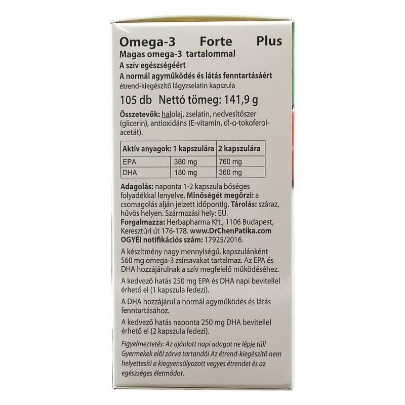 A készítmény nagy mennyiségű, kapszulánként 560 mg Omega-3 zsírsavakat tartalmaz.