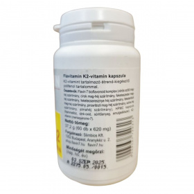 A Flavitamin K2-vitamin kapszula egy étrend-kiegészítő, amely K2-vitamint és bioflavonoidokat tartalmaz. A termék célja, hogy támogassa a normál csontozat fenntartását és a normál véralvadást. A kapszula polifenol tartalmú, amely különböző gyümölcsök és növények szárítmányából származik. A termék használata során fontos, hogy ne lépjük túl az ajánlott napi mennyiséget, és tartsuk távol kisgyermekektől. A kapszula nem helyettesíti a kiegyensúlyozott étrendet és az egészséges életmódot. Kumarin típusú véralvadásgátlót szedők számára nem ajánlott.