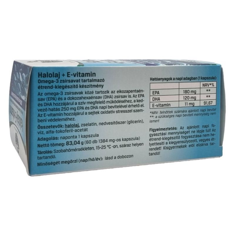 A halolaj kapszula omega-3 zsírsavakat tartalmaz, amelyek jótékony hatással vannak a bőr és a haj egészségére. Segít megőrizni a fiatalos megjelenést.