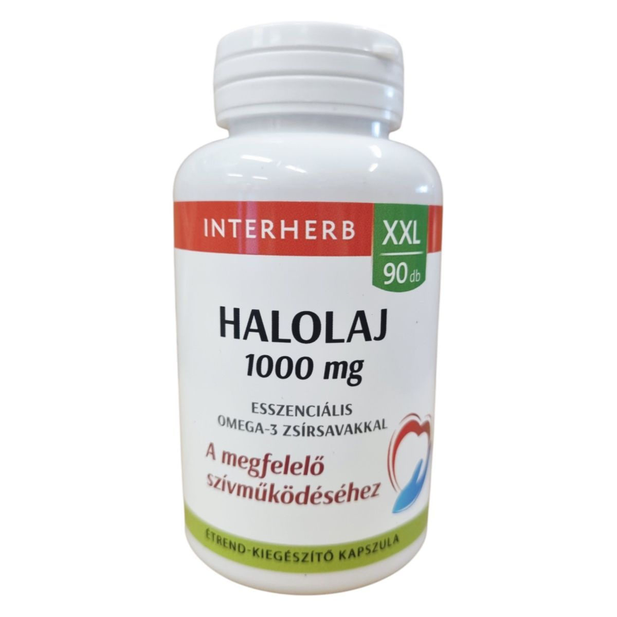 Az INTERHERB XXL HALOLAJ 1000 mg étrend-kiegészítő kapszula esszenciális Omega-3 zsírsavakat tartalmaz, amelyek hozzájárulhatnak a szív megfelelő működéséhez. A termék napi 1-2 kapszula fogyasztását javasolja, étkezések után, folyadékkal bevéve. A halolajban található EPA és DHA zsírsavak kedvező hatása napi 250 mg bevitelével érhető el. A termék szobahőmérsékleten tárolandó, gyermekektől elzárva. Az OGYÉI nyilvántartási száma 21821/2019.