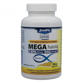 JutaVit MEGA halolaj Omega-3 extra magas hatóanyag tartalmú (EPA 400 mg DHA 200 mg) halolajat tartalmazó étrend-kiegészítő készítmény.