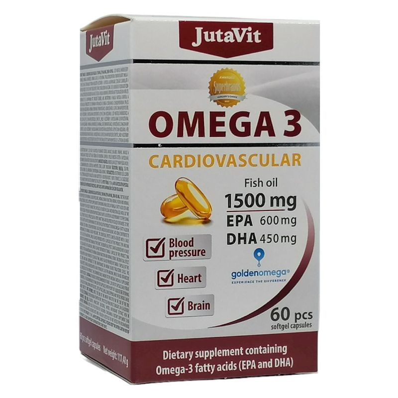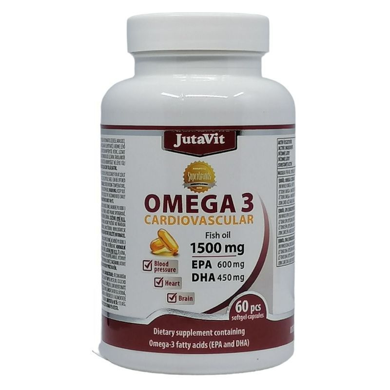 A JutaVit Omega 3 Cardiovascular, szív- és érrendszeri betegségben szenvedők részére Omega-3 zsírsavakat (EPA és DHA) magas mennyiségben tartalmazó speciális-gyógyászati célra szánt tápszer. A normál vérnyomás fenntartásáért, a szív megfelelő működéséért, a vér normál trigliceridszintjének fenntartásáért. A készítmény alkalmazása javasolt szív- és érrendszeri betegségekben szenvedők számára, a szív- és érrendszer működését segítő tápanyagok táplálkozás melletti kiegészítő bevitelére.