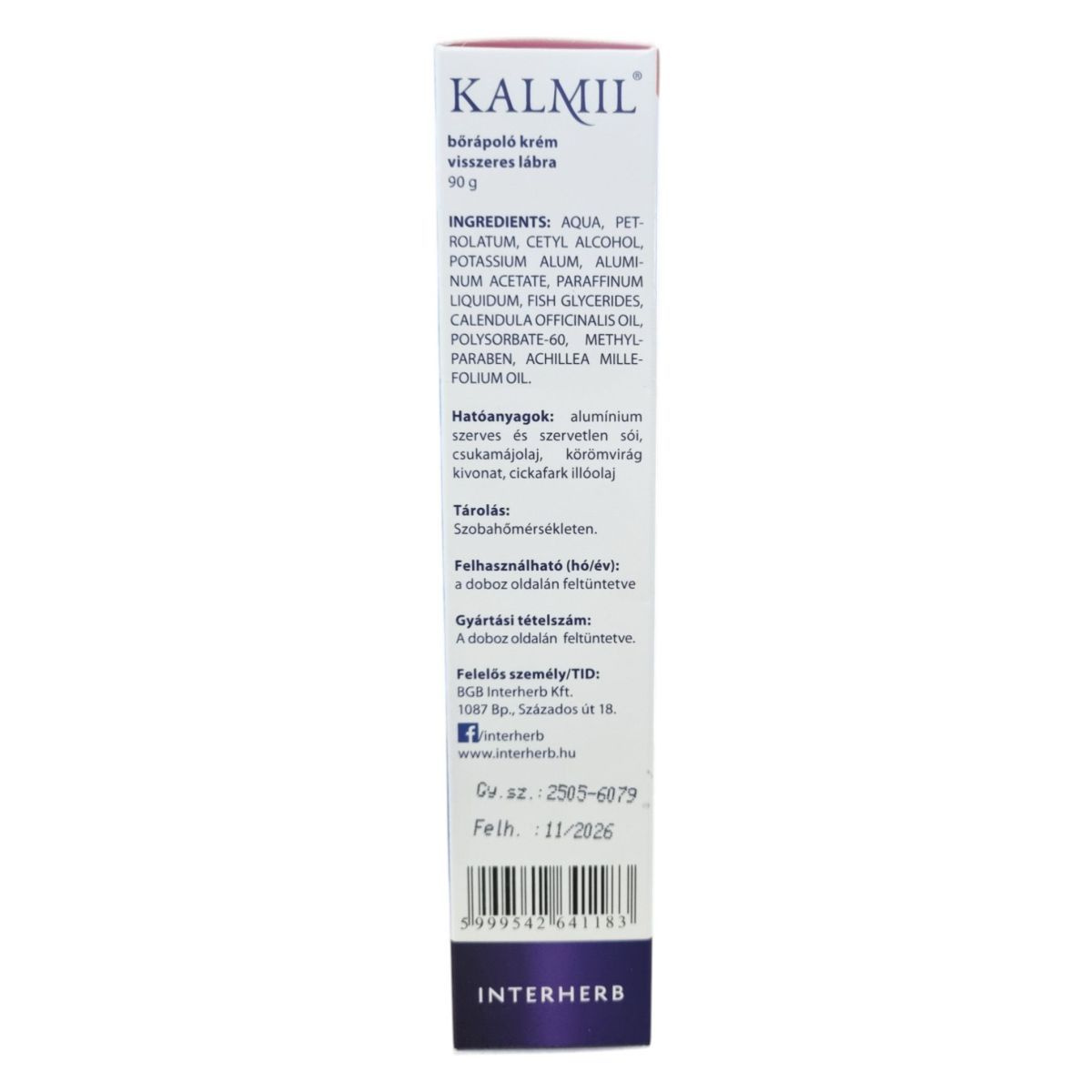A KALMIL® bőrápoló krém visszeres lábra kifejlesztett termék, amely könnyen felszívódik, és nem hagy foltot a ruházaton. Ideális lehet a duzzadt, „nehéz” láb ápolására, és segíthet mérsékelni a lábak terheléses panaszait, fáradtságát. Gyógynövény-komponensei ismert hámosítók és gyulladáscsökkentők, amelyek hozzájárulhatnak a bőr és a bőrszövet vérkeringésének javításához. A termék használata napi rendszerességgel ajánlott, különösen állófoglalkozás vagy terhesség esetén.