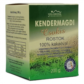 A kendermag rostjainak hatása: rákmegelőző, továbbá késlelteti az öregedési folyamatokat, erősíti a látást, ajánlott vashiányos állapotokban, savtúltengésre, de gyulladáscsökkentő hatással is rendelkezik. Szabályozza a vércukorszintet, a zsíranyagcserét. Erősíti az erek falát, a tüdő kötőszöveti rendszerét, az emésztőrendszert, emellett segít a fogszuvasodás megelőzésében és a fogzománc megvédésében. Ezeket a tulajdonságait kiegészíti, hogy védi a kollagénanyagcserét, és serkenti az immunrendszert. Rostban gazdag élelmi anyagok nélkülözhetetlenek a tápcsatorna egészséges működéséhez, a fel nem szívódó elemek képezik ugyanis azt a ballasztanyagot, amely a beleket kitöltve lehetővé teszi a béltartalom folyamatos továbbítását. Rostdús táplálékaink emellett életfontosságú vitaminokat és ásványi anyagokat is tartalmaznak. A rostos élelmiszerek alapvető D-vitaminforrásunkat jelentik, többségükben található A- és E-vitamin, sot életfontosságú nyomelemek is. Ezek az életfontosságú nyomelemek gátolják a rosszindulatú folyamatokat, és segítik azok megelőzését. Összetételénél fogva a vérkeringési zavarokat is csökkenti, és gátolja az öregedést. Életfontosságú anyagai az A- és E-vitamin, a szelén, de jelentos a kalcium, magnézium, vas, cink, mangán, réz és krómtartalma, sot az összes B-vitamin mellett folsav is található benne. Összetevők: kendermag őrlemény, gesztenyeméz, hársméz, vörös szőlő mag-héj őrleménye, szőlőmag olaj, kakaó, C-vitamin, aszkorbinsav. Javasolt fogyasztás: 1-2 evőkanállal (10-20g) naponta. Az ajánlott napi mennyiséget ne lépje túl. Étrend-kiegészítő nem helyettesíti a vegyes étrendet és az egészséges életmódot!