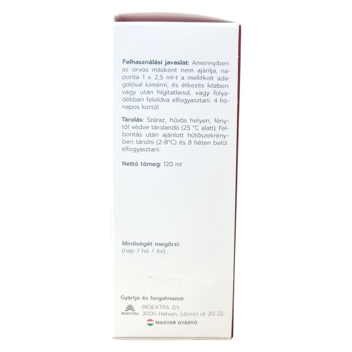 Naponta 1x 2,5 ml a mellékelt adagolóval kimérve, étkezés közben vagy után, hígítatlanul vagy folyadékban feloldva, 4 hónapos kortól alkalmazható.