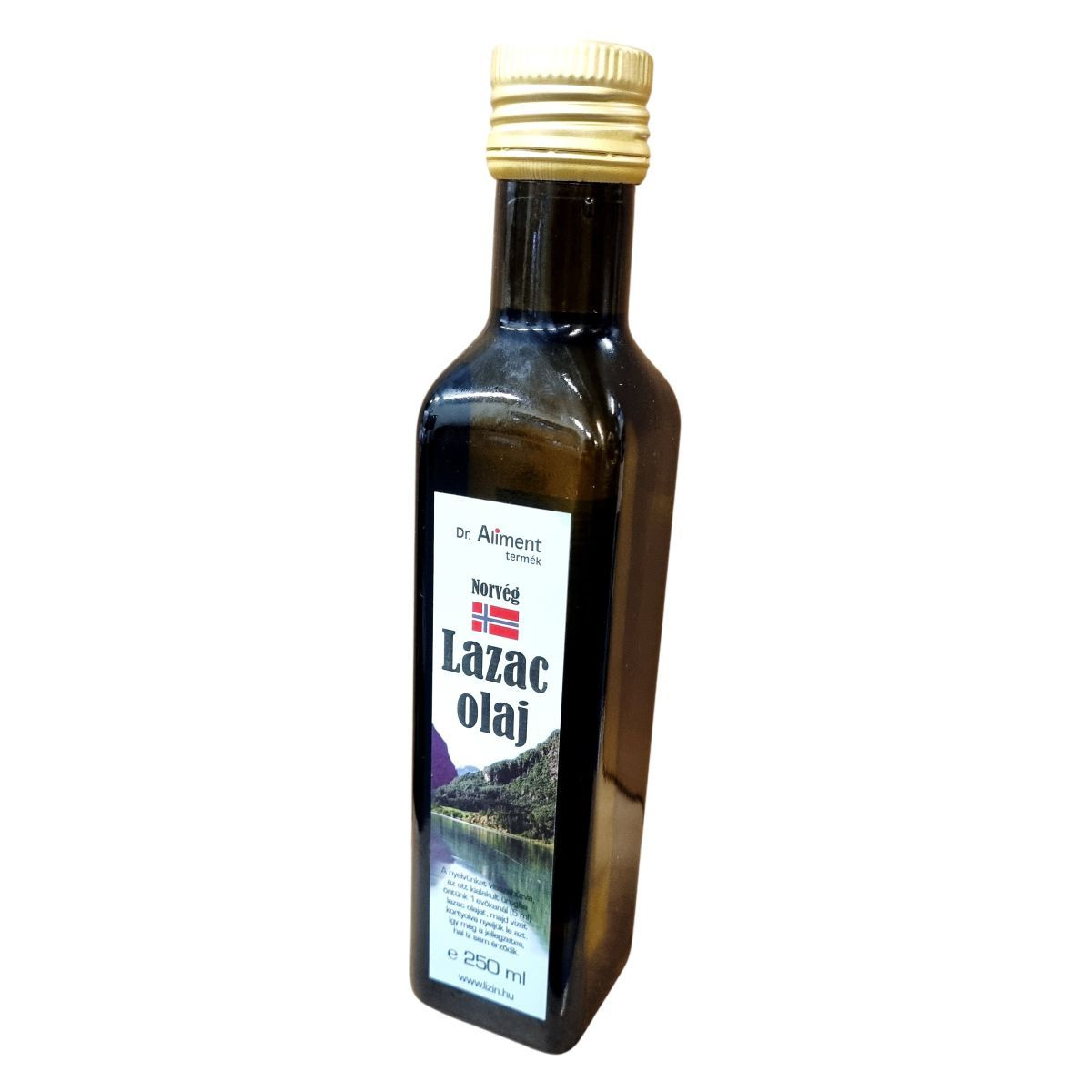 A Dr. Aliment Norvég Lazac olaj termék 250 ml kiszerelésű, folyékony étrend-kiegészítő. Az omega-3 zsírsavak, elsősorban az EPA és DHA, hozzájárulhatnak a vér normál triglicerid szintjének megtartásához, az egészséges szívműködéshez, valamint a normális véralvadás fenntartásához és a vérnyomás megőrzéséhez. A fogyasztás során ajánlott az olajat a nyelvünk visszahúzásával kialakított üregbe önteni, majd vízzel leöblíteni, így csökkentve a jellegzetes halíz érzékelését. Az étrend-kiegészítő nem tartalmaz fehérjét vagy szénhidrátot, kizárólag zsírforrásként szolgál. A termék gyártója és forgalmazója a Dr. Aliment Kft., amely a Debrecenben található. Fontos a napi ajánlott mennyiség betartása, és a kisgyermekek elől való elzárás. A termék kizárólag étrend-kiegészítőként használható, nem helyettesíti a változatos és kiegyensúlyozott étrendet.