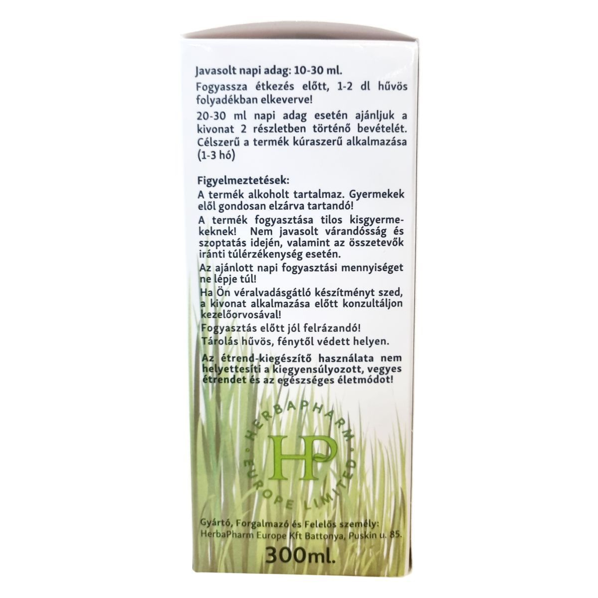 A termék alkoholt tartalmaz. Gyermekek elől gondosan elzárva tartandó! Fogyasztása tilos kiskorúaknak. Nem javasolt várandósság és szoptatás idején, valamint túlérzékenység esetén. Az ajánlott napi fogyasztási mennyiséget ne lépje túl! Vérhígító készítmény szedése esetén alkalmazása előtt konzultáljon kezelőorvosával!