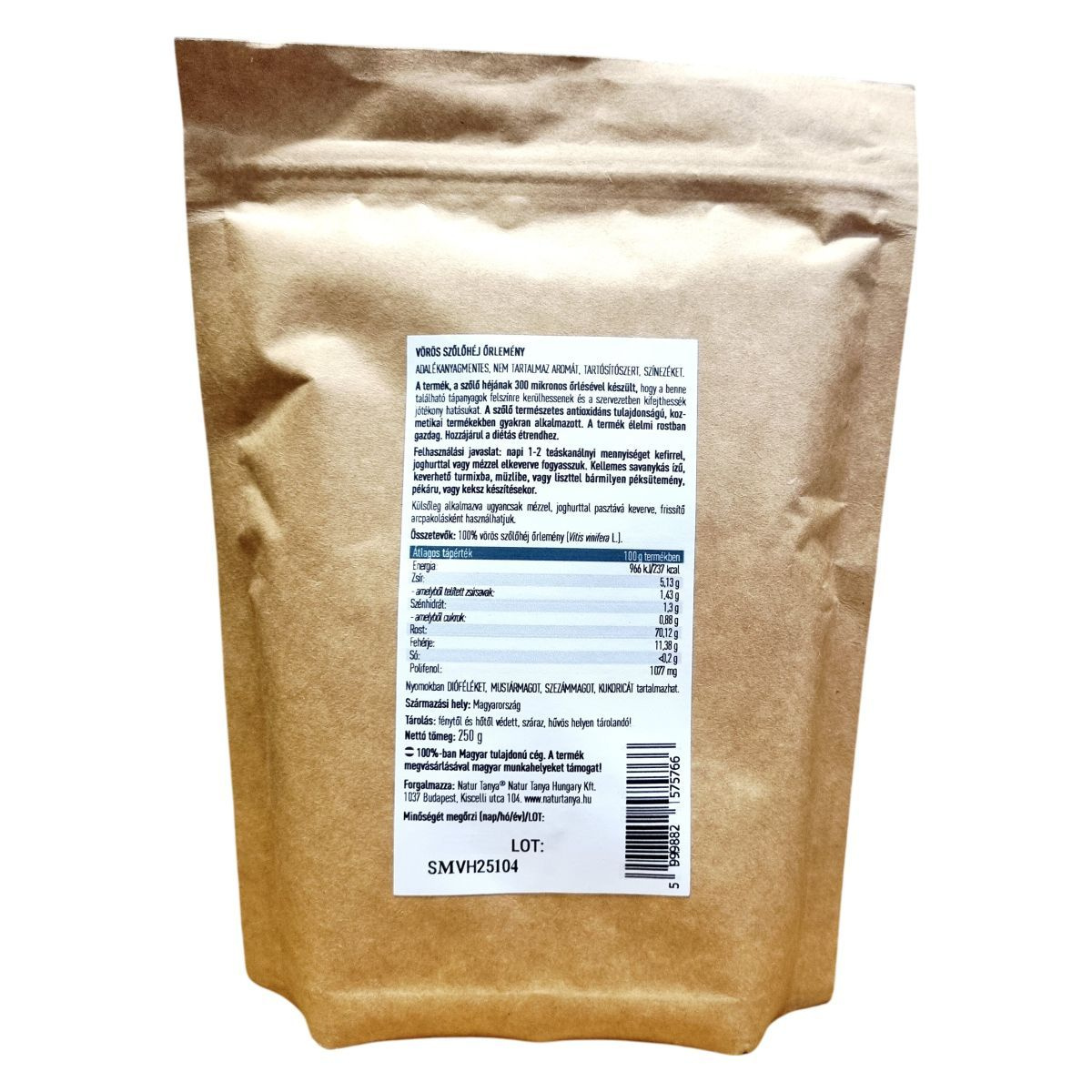 A Natur Tanya® Vörös Szőlőhéj Őrlemény egy 100%-ban magyar tulajdonú cég terméke, amely a vörös szőlő héjának 300 mikronos őrlésével készült. Ez a folyamat lehetővé teszi, hogy a benne található tápanyagok felszínre kerüljenek, és a szervezetben kifejthessék jótékony hatásukat. A termék élelmi rostban gazdag, és hozzájárulhat a diétás étrendhez. Kellemes savanykás ízű, és különféle ételekhez, italokhoz keverhető. Külsőleg alkalmazva frissítő arcpakolásként is használható. A termék megvásárlásával magyar munkahelyeket támogathat.