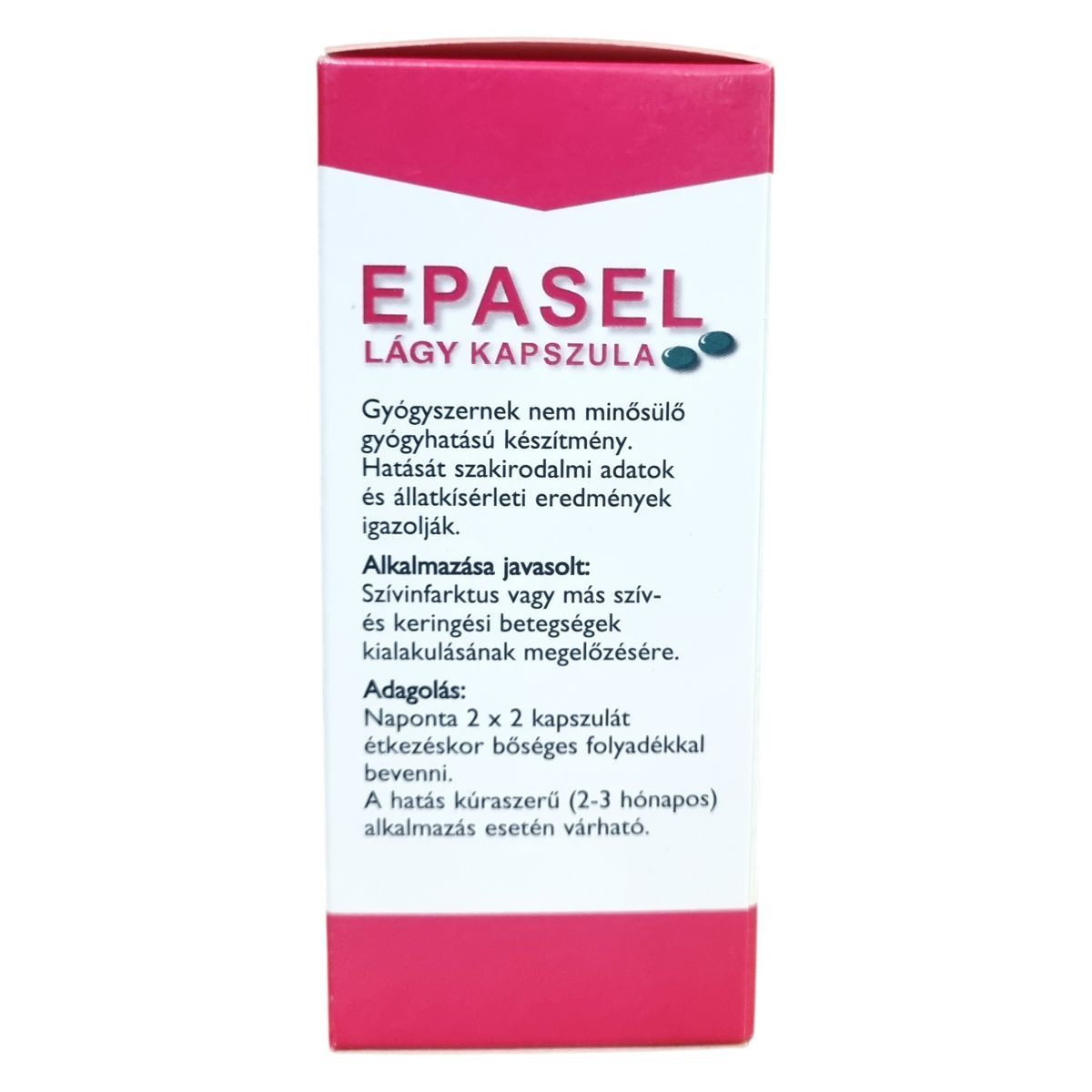 Az EPASEL lágy kapszula egy gyógyhatású készítmény, amely segítheti a szív- és érrendszeri egészség megőrzését, különösen a szívinfarktus és más keringési betegségek kialakulásának megelőzésében.