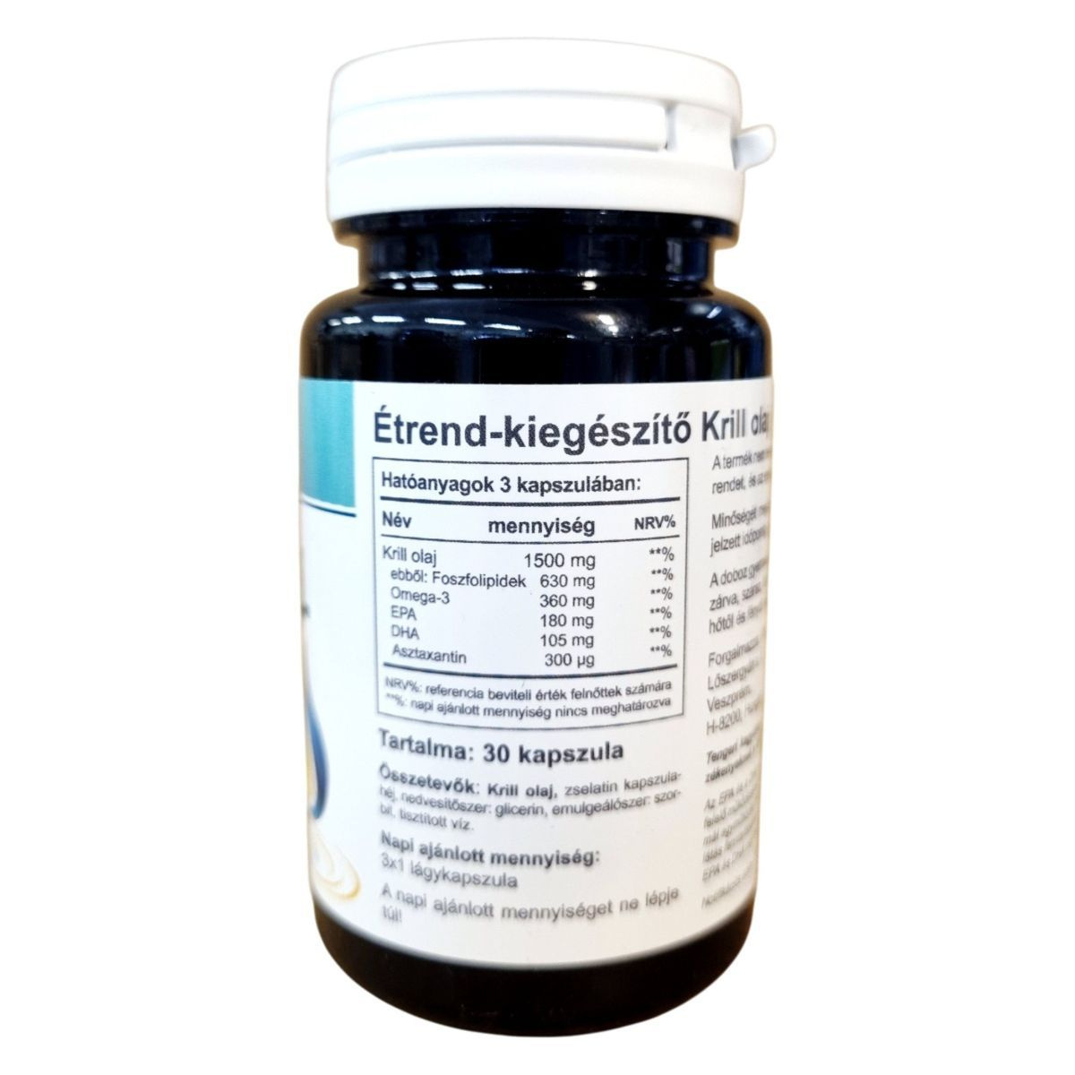 A krillolaj az antarktiszi krill (Euphausia superba) nevű apró rákféléből nyert, omega–3 zsírsavakban gazdag tengeri eredetű lipidkivonat. Fő hatóanyagai az eikozapentaénsav (EPA) és a dokozahexaénsav (DHA), amelyek részben foszfolipid formában vannak jelen, valamint természetes antioxidáns, például asztaxantin is társul hozzájuk. Az omega–3 zsírsavak beépülhetnek a sejtmembránokba, és szerepet játszhatnak a gyulladásos mediátorok képződésének szabályozásában. A krillolajat elsősorban a szív- és érrendszeri egészség, valamint az általános lipid-egyensúly támogatására alkalmazzák. Tengeri eredete miatt allergia és véralvadásgátló kezelés esetén körültekintés szükséges. Egyéni egészségügyi állapot vagy gyógyszerszedés esetén javasolt szakemberrel konzultálni.