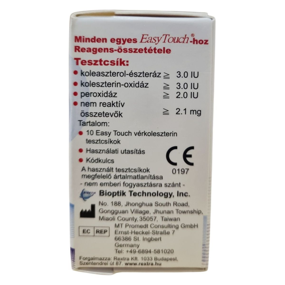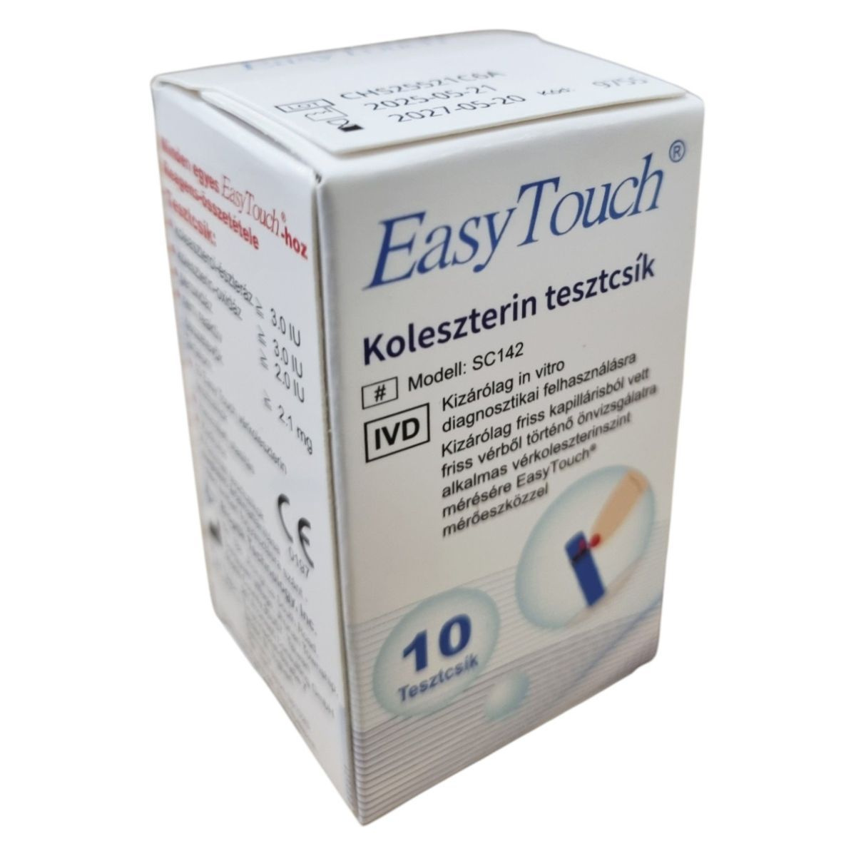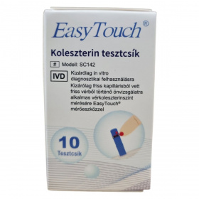 Az EasyTouch koleszterin tesztcsík in vitro diagnosztikai eszköz, amely kizárólag önellenőrzésre szolgál. A termék 10 db EasyTouch vérkoleszterin tesztcsíkot, egy használati utasítást és egy kódkulcsot tartalmaz.