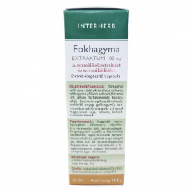 A INTERHERB Fokhagyma EXTRAKTUM 100 mg kapszula a fokhagyma tradicionális előnyeit kínálja, hozzájárulhat a vérlipid- és koleszterinszint szabályozásához, valamint a szív- és érrendszer egészséges működéséhez. A termék szagtalanító eljárással készül, így a fokhagyma kellemetlen utóíze nem érezhető. A bélben oldódó kapszula hatékony felszívódást biztosíthat. A fokhagyma kivonat szerepet játszhat a káros mikroorganizmusok elleni védelemben, és támogathatja az immunrendszer egészséges működését.