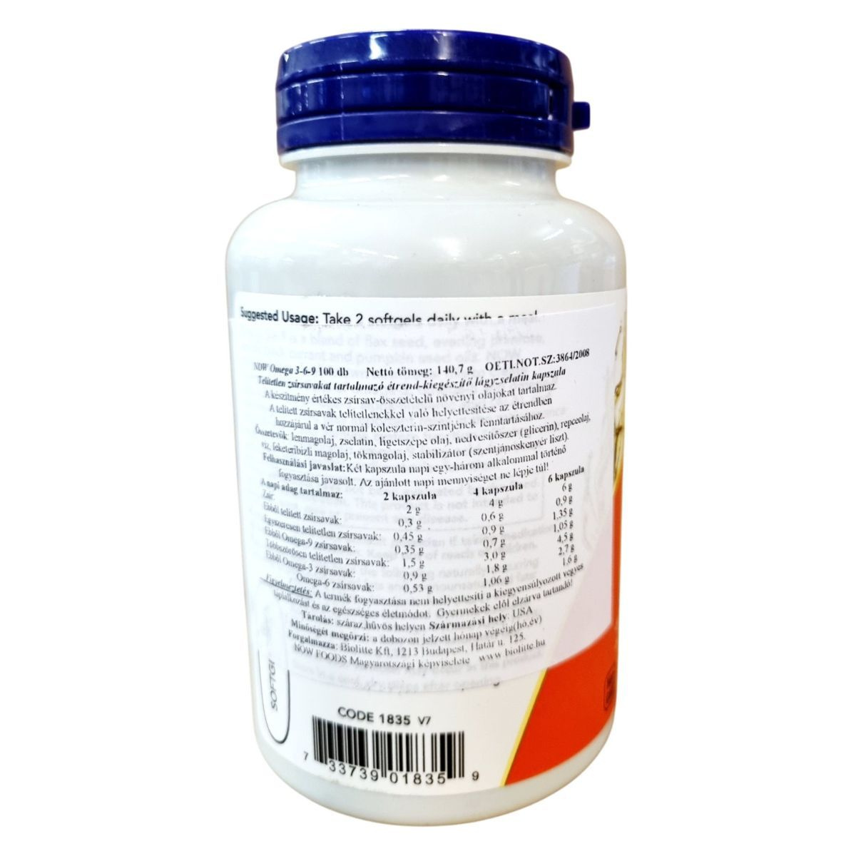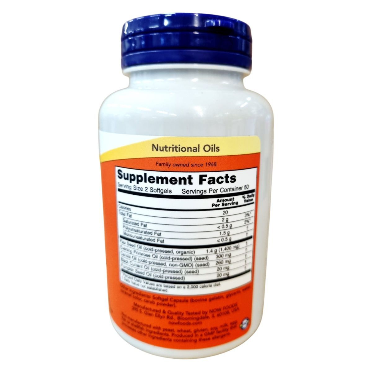A NOW Omega 3-6-9 étrend-kiegészítő egy telítetlen zsírsavakat tartalmazó lágyzselatin kapszula, amely különböző növényi olajok értékes zsírsav-összetételét kínálja. A termék hozzájárulhat a vér normál koleszterinszintjének fenntartásához, és támogatást nyújthat az egészséges bőr és az immunrendszer számára. A készítmény organikus lenmagolajat, ligetszépe olajat, repceolajat, feketeribizli magolajat és tökmagolajat tartalmaz. A termék hexánmentes, és nem tartalmaz élesztőt, búzát, glutént, szóját, kukoricát, tejet, tojást, halat vagy kagylót. A GMP minősítés biztosítja a termék minőségét és biztonságát.
