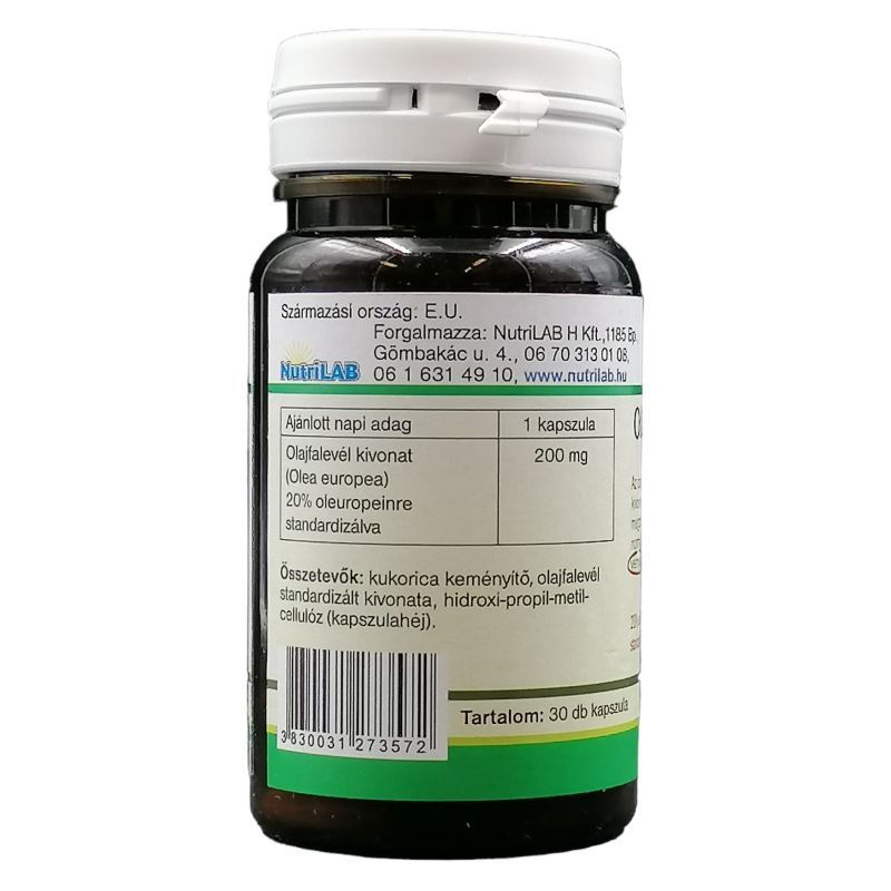 Növényi kapszulában-vegetáriánusok is fogyaszthatják! 20% oleuropeinre standardizálva. Összetétel: kukoricakeményítő, olajfalevél standardizát kivonata, hidroxi-metil-propil-cellulóz (kapszulahéj). Tartalom: 30 kapszula. Kapszula súlya: 530 mg. Nettó tömeg: 15,9 g.