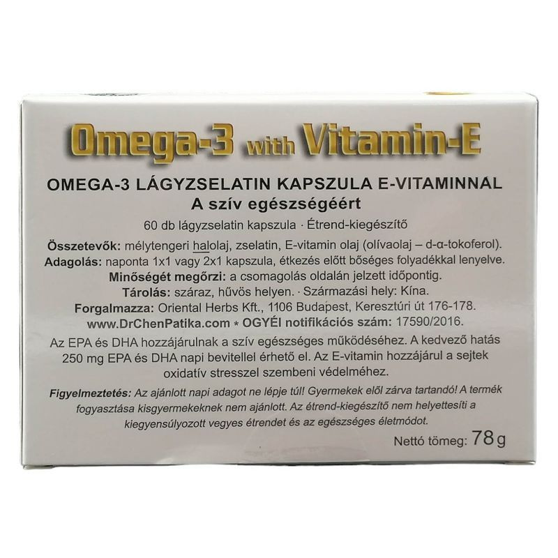 Az EPA és a DHA (omega-3 zsírsavak) csökkentik a vér triglicerid szintjét. Az E-vitamin természetes zsírban oldódó antioxidáns. Védi a sejteket és a szöveteket a káros szabad gyökökkel szemben, melyek felelősek az oxidációs eredetű öregedési folyamatokért. Naponta: 2 × 1 kapszula szedése javasolt.