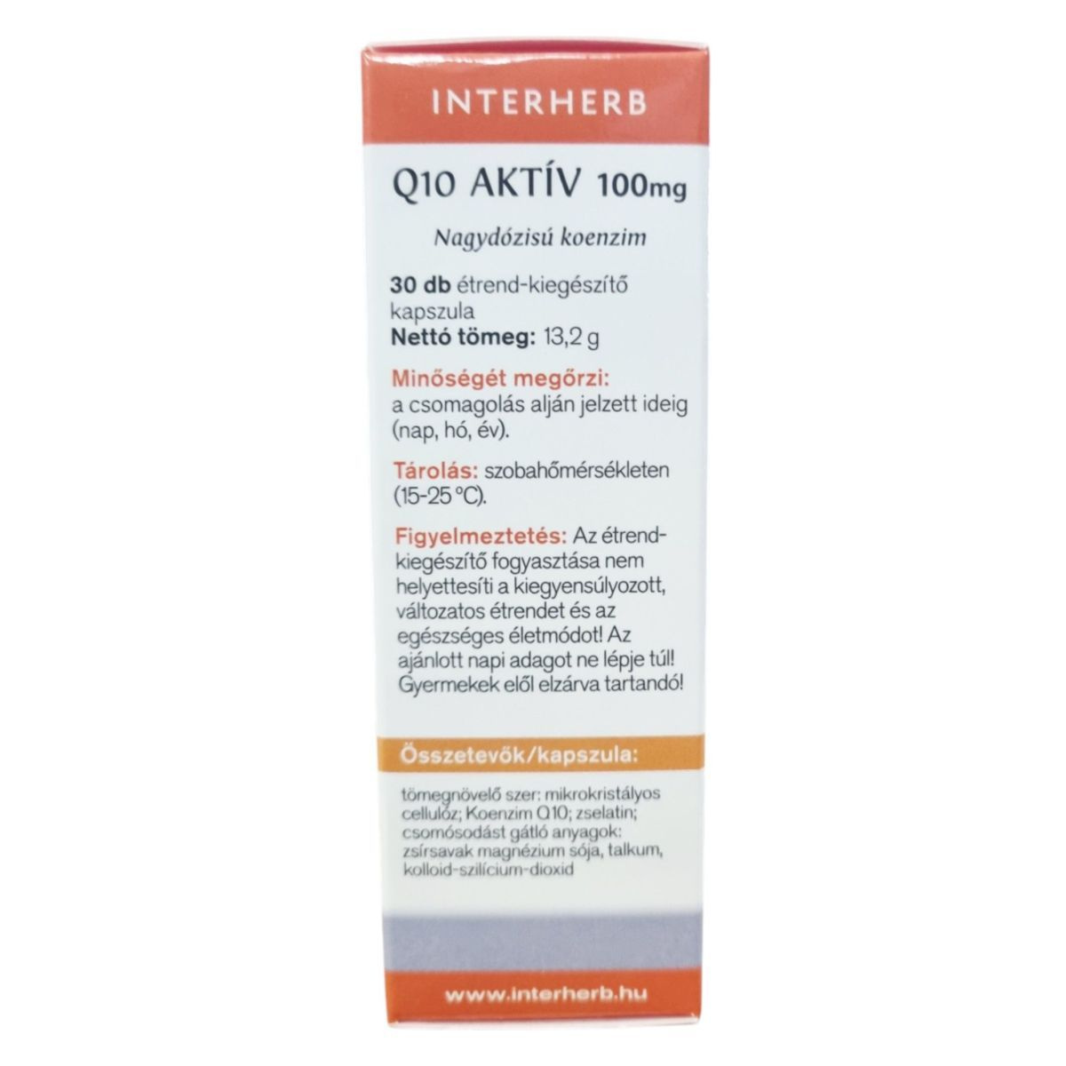 tömegnövelő szer: mikrokristályos cellulóz, Koenzim Q10, zselatin, csomósodást gátló anyagok: zsírsavak magnézium sója, talkum, kolloid-szilícium-dioxid