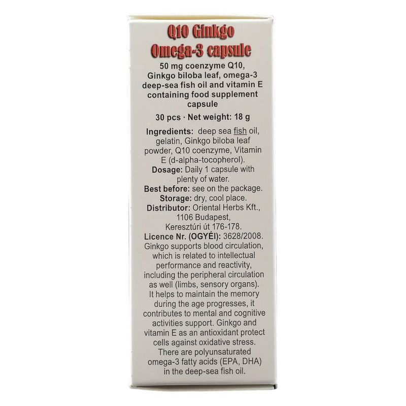 A többszörösen telítetlen omega-3 zsírsavak hozzájárulnak a normál triglicerid szint, a normál vérnyomás, az egészséges szívműködés és a normális véralvadás fenntartásához. A ginkgo flavonoidok hozzájárulnak a keringési rendszer normál működéséhez, illetve antioxidánsként viselkednek. A hatóanyagok rendszeres fogyasztásával hozzájárulhatunk az időskori agyműködés megfelelő szinten tartásához. A készítményhez adott E-vitamin fontos antioxidáns hatású vitamin, szerepet játszik az immunrendszer megfelelő működésében. Naponta 1 kapszula szedése javasolt.
