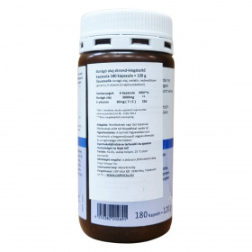 Zsír: 500 mg (1 kapszula), 3000 mg (6 kapszula), ebből telített zsírsavak: 74 mg (1 kapszula), 444 mg (6 kapszula), telítetlen zsírsavak: 426 mg (1 kapszula), 2556 mg (6 kapszula), ebből egyszeresen telítetlen zsírsavak: 126 mg (1 kapszula), 756 mg (6 kapszula), többszörösen telítetlen zsírsavak: 300 mg (1 kapszula), 1800 mg (6 kapszula)