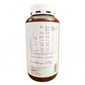 Az Omega-3 halolaj kapszula a SANCT BERNHARD márkától 400 kapszulás kiszerelésben érhető el. A termék magas minőségű, biológiailag aktív Omega-3 zsírsavakat tartalmaz, melyek közül az EPA és DHA különösen fontosak lehetnek a szív- és érrendszer támogatásában. Az E-vitamin antioxidáns hatása révén hozzájárulhat a sejtek védelméhez. A termék Németországban készül, és a Kräuterhaus Sanct Bernhard KG gyártja. A kapszulák halolajat, nedvesítőszert (glicerin) és E-vitamint tartalmaznak, és napi 2 kapszula fogyasztása javasolt felnőttek számára. Fontos, hogy a terméket gyermekektől elzárva tartsuk, és ne lépjük túl az ajánlott napi mennyiséget.