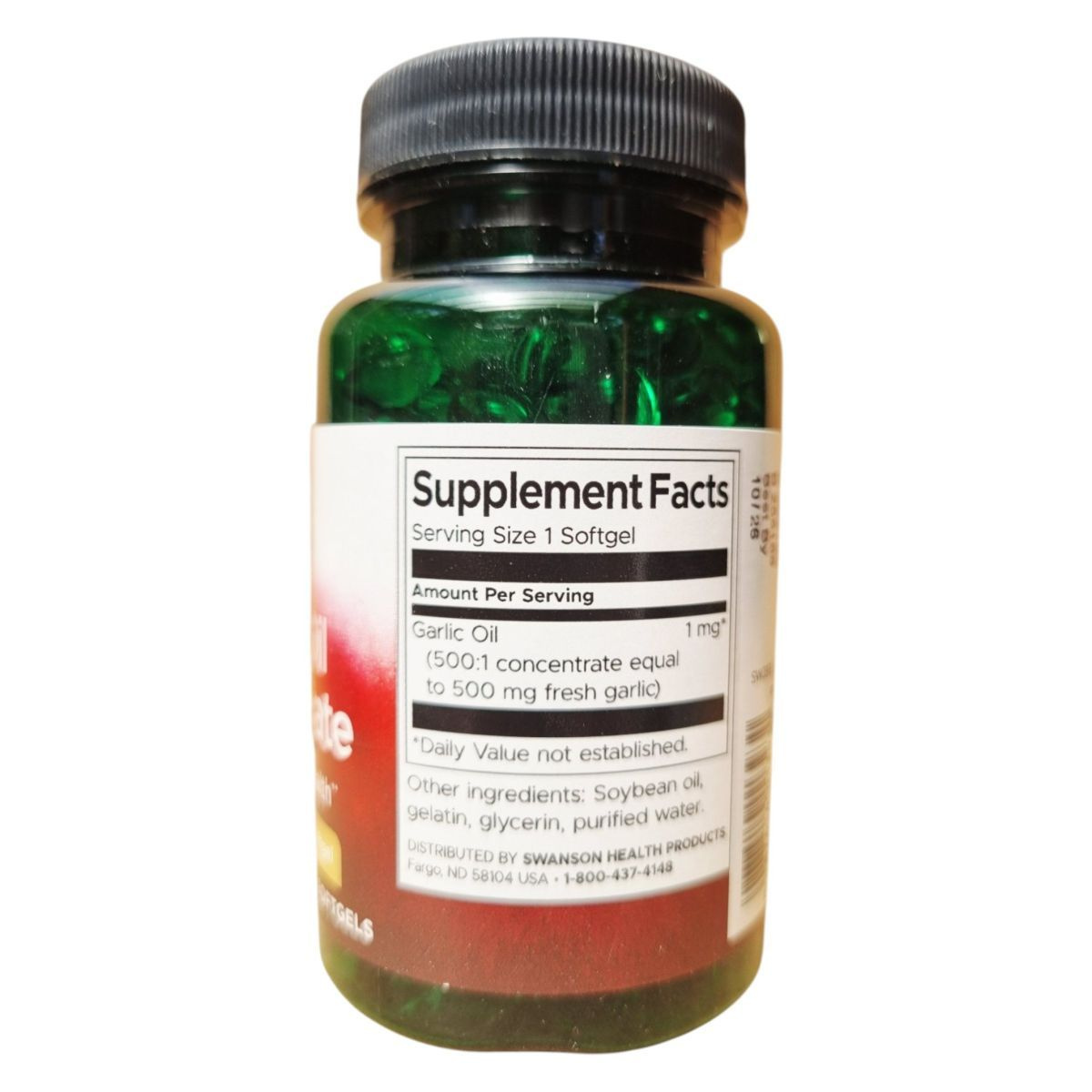 A Swanson Garlic Oil Concentrate egy étrend-kiegészítő, amely fokhagyma olaj koncentrátumot tartalmaz, 500 mg friss fokhagymának megfelelő mennyiségben. A termék célja, hogy támogassa a szív- és érrendszer egészségét. A kapszulák könnyen lenyelhetők, és a napi ajánlott mennyiség mindössze egy kapszula. Az összetevők között megtalálható a szójabab olaj, zselatin, glicerin és tisztított víz. A terméket száraz, hűvös helyen kell tárolni, és fontos, hogy gyermekek elől elzárva tartsuk. A Swanson Health Products USA által gyártott termék OGYÉI notifikációval rendelkezik.