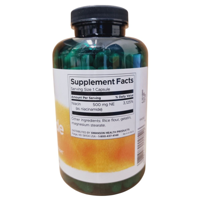 A Niacinamid étrend-kiegészítő 500 mg-os kapszulái niacint tartalmaznak, amely hozzájárulhat a szervezet normál működéséhez.
