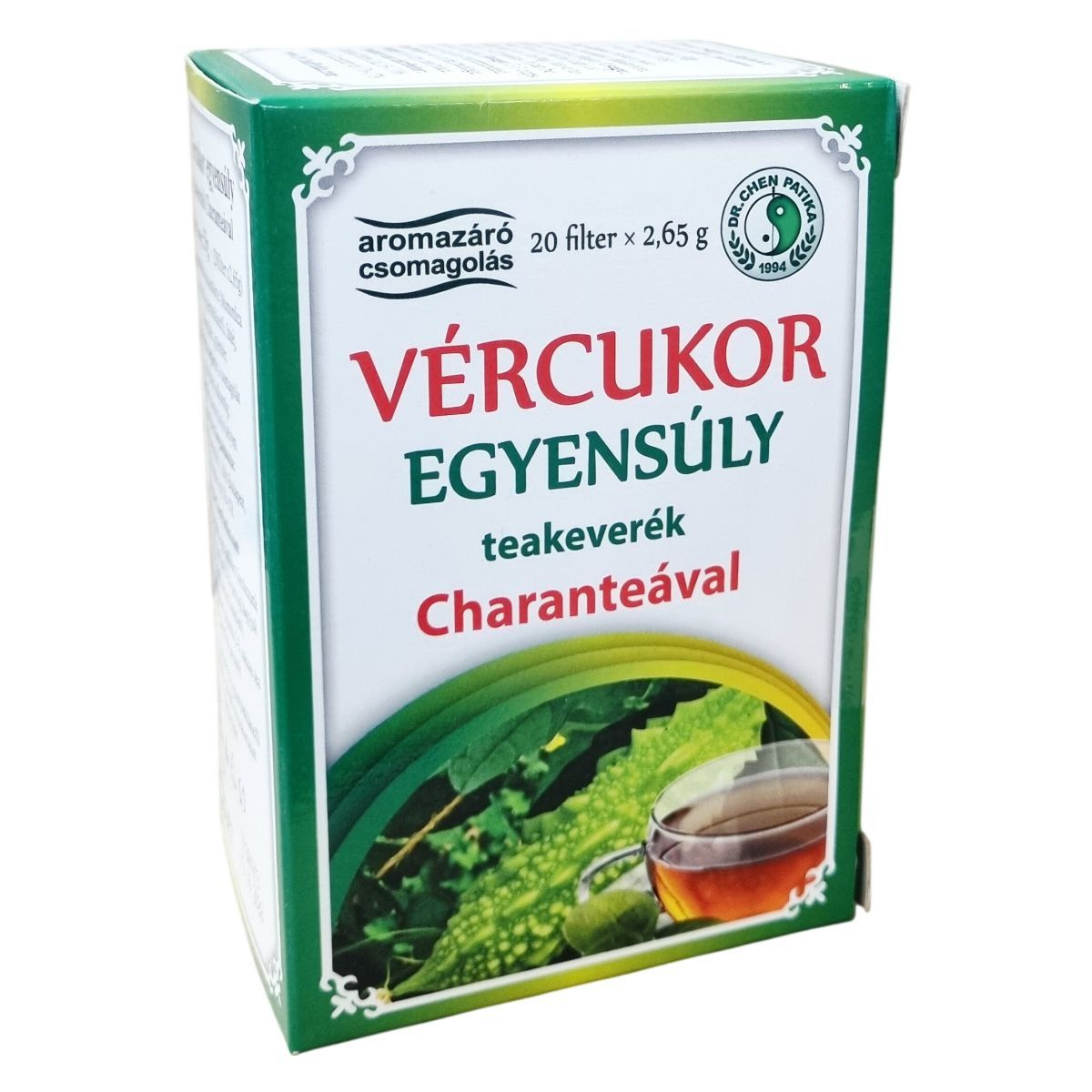 A vércukor egyensúly teakeverék hatékonyan egyesíti a balzsamkörte (Momordica charantia), gyermekláncfű, fahéj, édesgyökér és gyömbér természetes előnyeit. A fahéj, a gyömbér és a gyermekláncfű támogatják a normál vércukorszint fenntartását. A termék több mint 30 éve fogyasztók bizalmát élvezi a Dr. Chen Patika minőségi gyártási gyakorlatával, amely biztosítja a megbízható és ellenőrzött termék előállítását. A teakeverék 20 darab filterből áll, melyek aromazáró csomagolásban vannak, így megőrzik frissességüket és hatóanyagaikat.