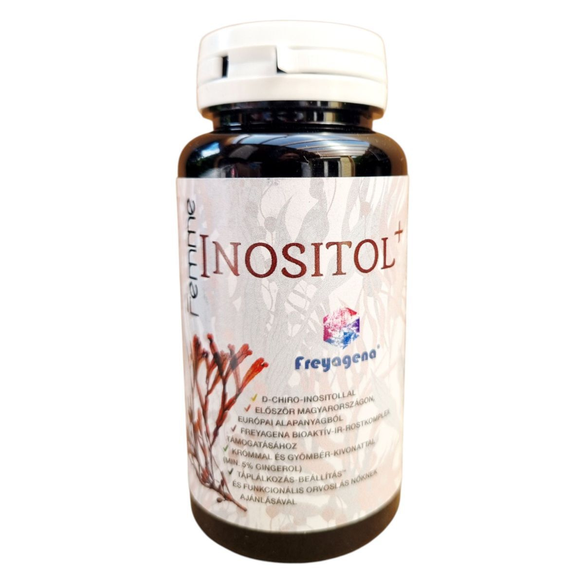 A Freyagena Femme INOSITOL+ étrend-kiegészítő Magyarországon fejlesztett és gyártott termék, amely D-chiro-inositolt, gyömbér-kivonatot és krómot tartalmazhat. A termék célja, hogy támogassa a táplálkozás-beállítást és a funkcionális orvosi ajánlásokat. A gyömbér-kivonat legalább 5% gingerolt tartalmazhat, amely hozzájárulhat a termék hatékonyságához. A termék kizárólagos forgalmazója a Nutribalance Kft., amely Budapesten található.