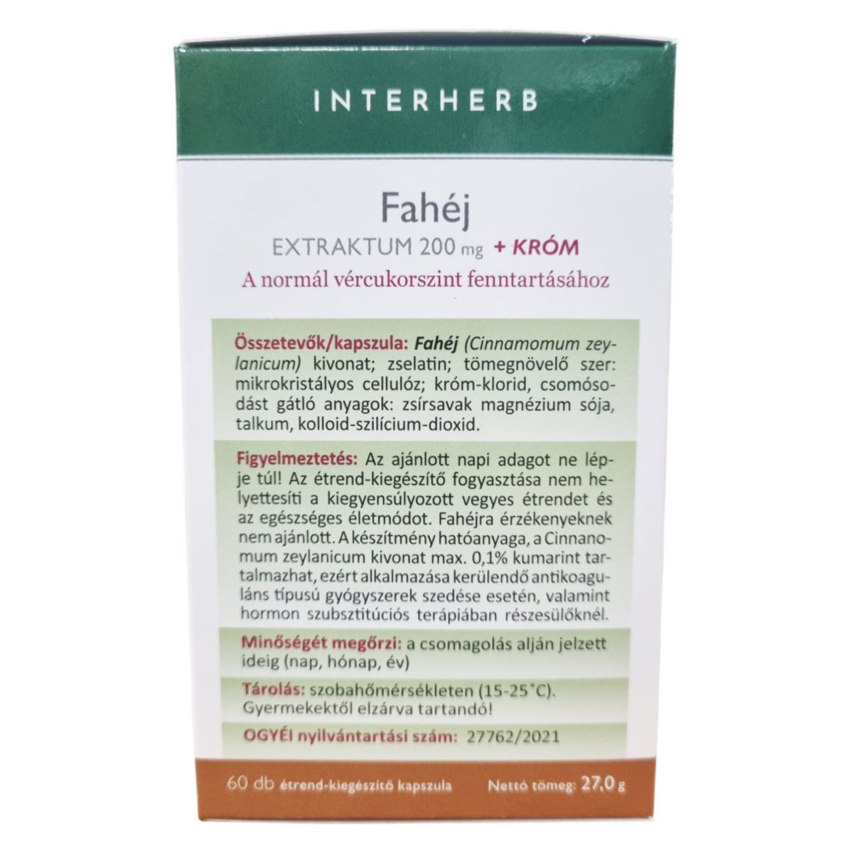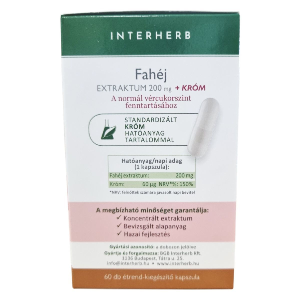 Az INTERHERB Fahéj EXTRAKTUM 200 mg + KRÓM kapszula a normál vércukorszint fenntartásához járulhat hozzá. A termék 200 mg fahéj extraktumot tartalmaz, amely megfelel 2000 mg fahéj őrleménynek. A hozzáadott króm szerepet játszhat a makrotápanyagok anyagcseréjében. A készítmény koncentrált extraktumot és bevizsgált alapanyagokat tartalmaz, hazai fejlesztés eredménye. A fahéj aromaanyagai miatt kedvelt fűszer, de emellett értékes gyógynövény is, amely segíthet az emésztés támogatásában és a normál gyomorműködés fenntartásában.
