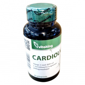 A Vitaking CARDIOLIC étrend-kiegészítő egy komplex formula, amely Omega-3 zsírsavakat, Q10 koenzimet, L-karnitint és szagmentes fokhagymaolajat tartalmaz. Az EPA és a DHA hozzájárulhat a szív megfelelő működéséhez, míg a DHA a normál agyműködés fenntartásához. A fokhagyma segíthet fenntartani a szív egészségét, valamint az immunrendszer normál működését. A termék 60 gélkapszulát tartalmaz, és napi egy kapszula fogyasztása javasolt étkezés közben.