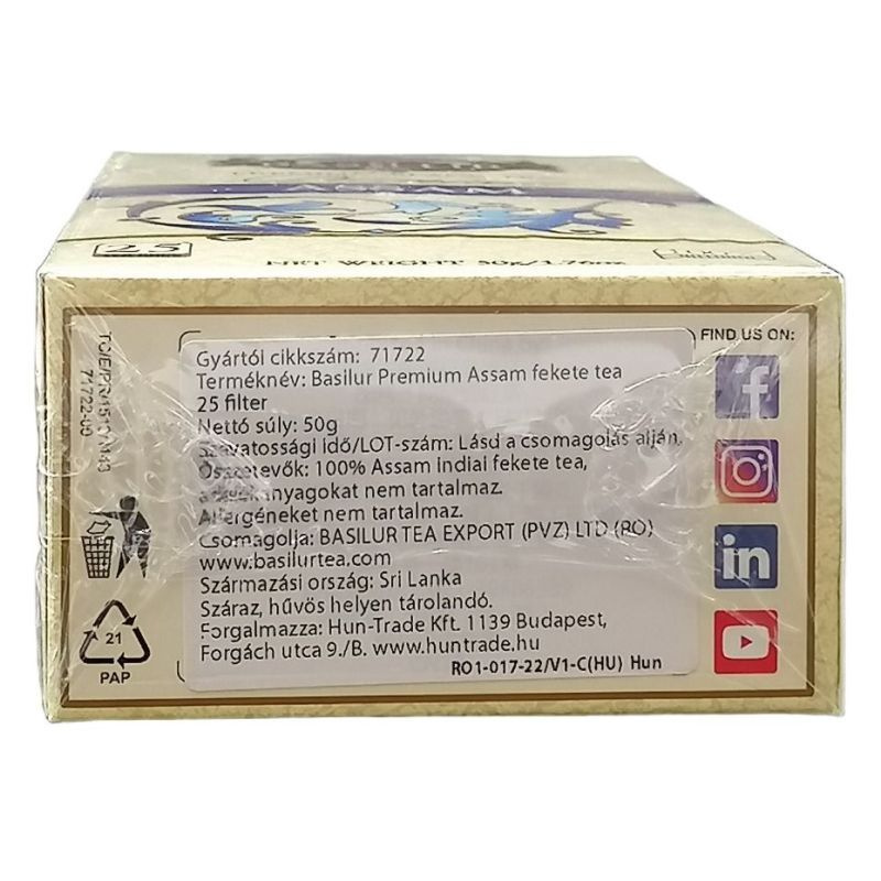 Assam tea észak-kelet india assam tartományából származik. Karakteres erőteljes ízzel rendelkező fekete teafajta. A kesernyés mégis teljes mély íz miatt indiában egy kevés tejjel egészítik ki csészéjüket ezzel tompítva az erőteljes jegyeit a teának. Nem csak az íze nagyon ütős és hosszan tartó. A hatása is sokáig érezhető. Tökéletesen kiváltható egy csésze assam teával a reggeli kávé. A doboz 25 filtert tartalmaz.