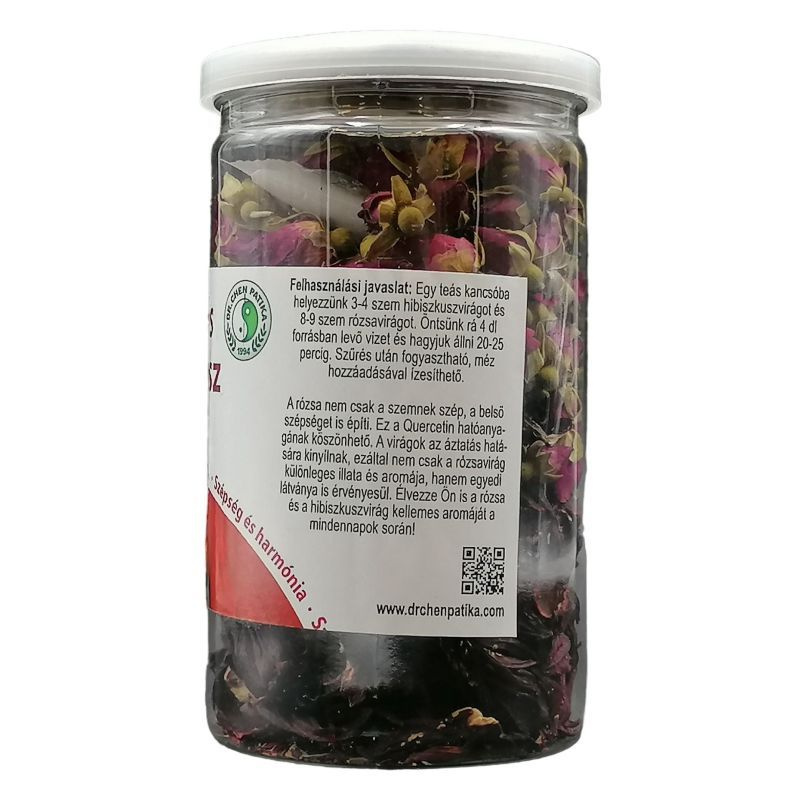 Élvezze Ön is a rózsa és a hibiszkusz virág kellemes aromáját a mindennapok során! A keverékben található rózsafejek a teavízben gyönyörűen kinyílnak, a készítmény vendégváráshoz és ajándéknak is kiváló. Felhasználási javaslat: Egy teás kancsóba helyezzünk 3-4 szem hibiszkusz virágot és 8-9 szem rózsa virágot. Öntsünk rá 4 dl forrásban levő vizet és hagyjuk állni 20-25 percig. Szűrés után fogyasztható, méz hozzáadásával ízesíthető.