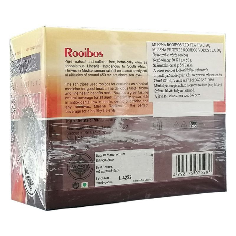 A Rooibos tea egy ízletes és egészséges alternatíva, amely a dél-afrikai rooibos növény leveleiből készül. Koffeinmentes, így ideális választás azok számára, akik szeretnék elkerülni a koffeint, mégis élvezni szeretnék a tea jótékony hatásait. A tea lágy, édes íze és aromája segít a pihenésben, így tökéletes választás egy hosszú nap után.