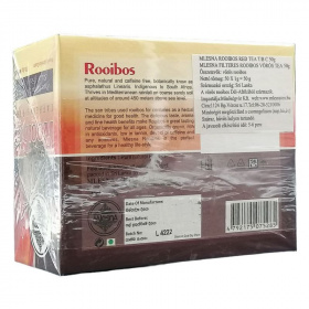 Filteres rooibos tea aromazáró fóliazacskóba csomagolva. Összetevők: természetes vörös rooibos. Nem bio ellenőrzött termék!