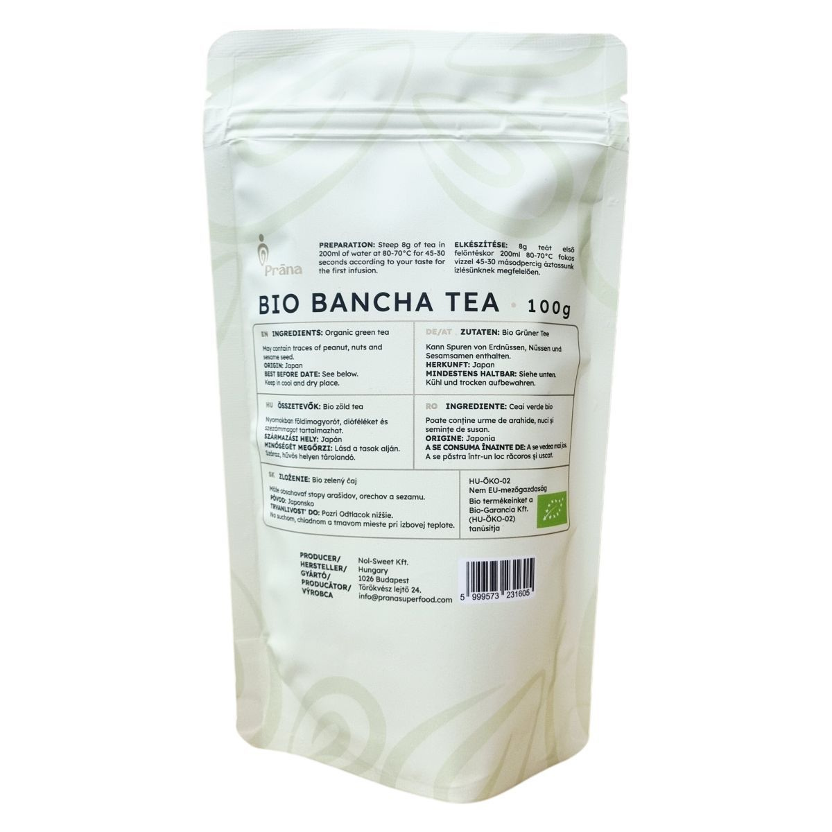 A Prána BIO BANCHA tea japán late-season szüretből származik, természetes összetételű, 100%-ban bio és vegán. Nem tartalmaz glutént és a vonatkozó bio-tanúsítvány garantálja minőségét. Az allergén figyelmeztetés jelzi, hogy esetlegesen tartalmazhat földimogyoró, diófélék és szezámmag nyomokat. A termék 100g-os kiszerelésben kapható, származási helye Japán. A megfelelő elkészítés érdekében az adagolás és áztatási idő megtalálható a csomagoláson. A tárolást javasolt száraz, hűvös helyen végezni.