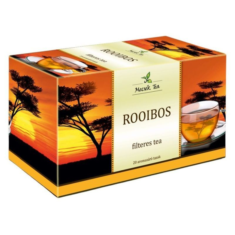 A rooibos teát, már csak neve miatt is folyton a fekete vagy a zöld teához hasonlítják. Legfontosabb különbség, hogy koffeinmentes, nincs élénkítő hatása, így egész nap fogyasztható. Magas antioxidáns és ásványi anyag tartalmú, rendkívül egészséges ital, nem véletlenül egyre népszerűbbé hazánkban is, különösen az egészségükre fokozottan figyelő fogyasztók körében. Összetevők: Rooibos