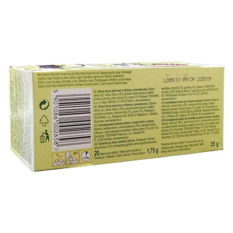 Összetevők: zöld tea, gyömbér, citrom ízesítő.