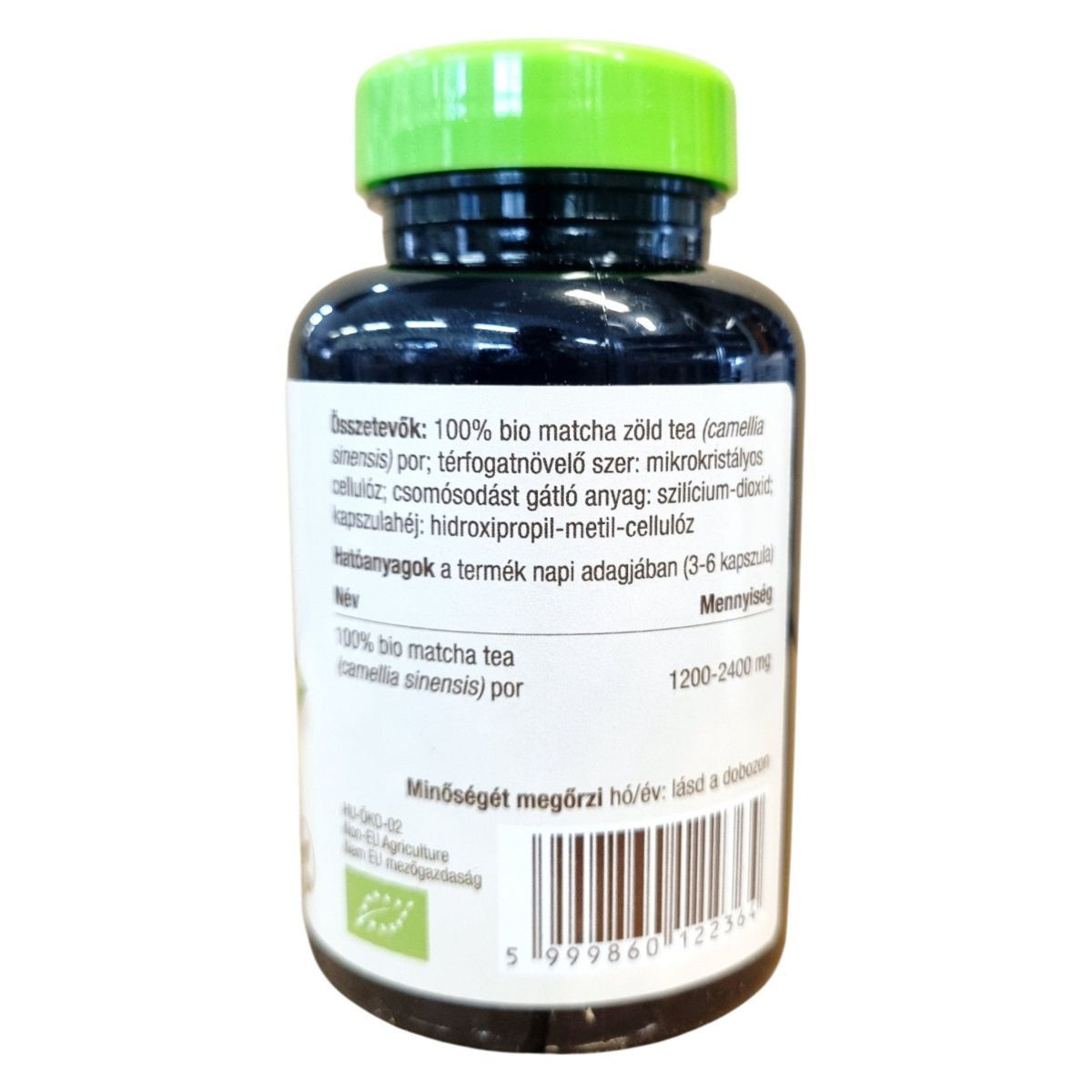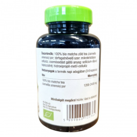 100% bio matcha zöld tea (camellia sinensis) por, mikrokristályos cellulóz, szilícium-dioxid, hidroxipropil-metil-cellulóz