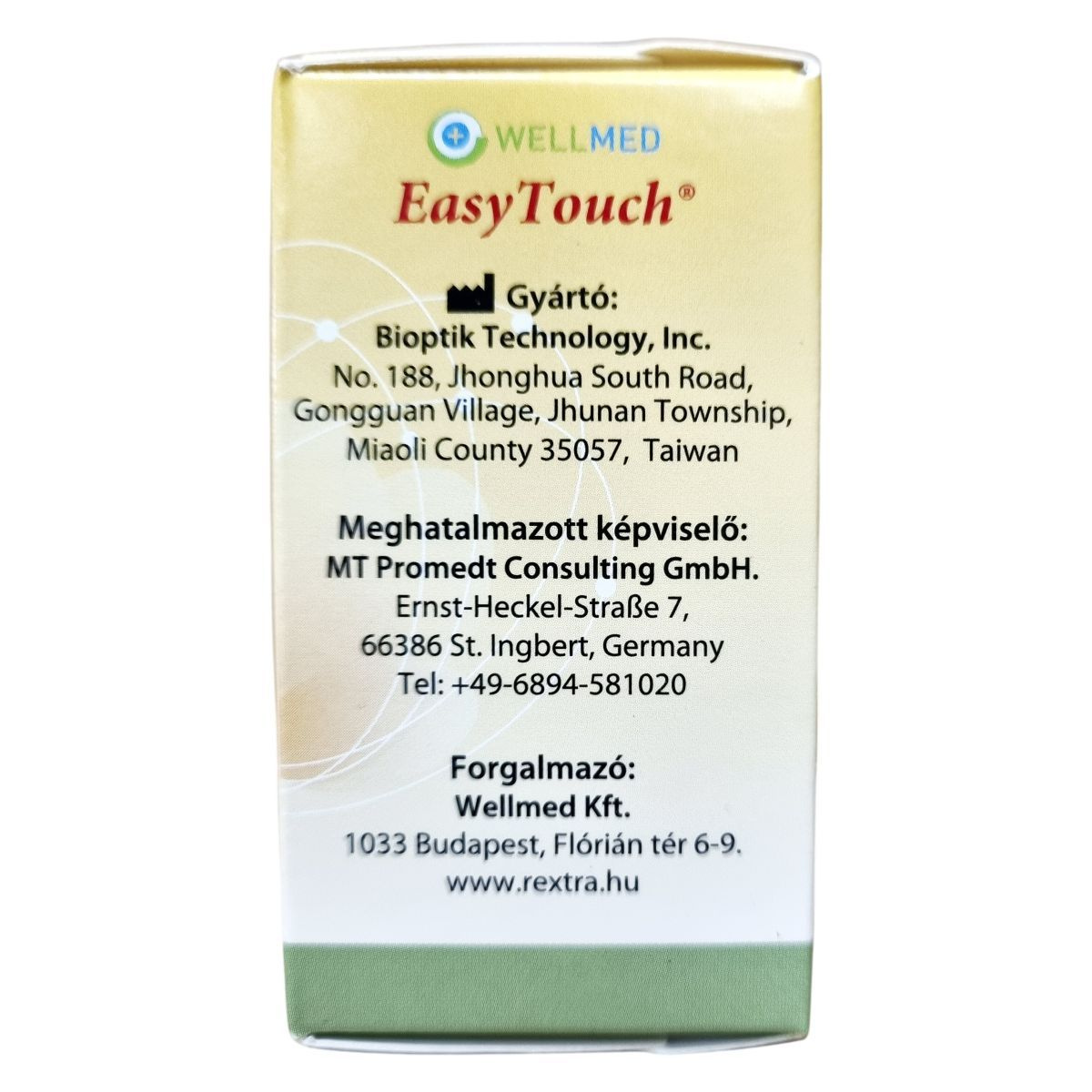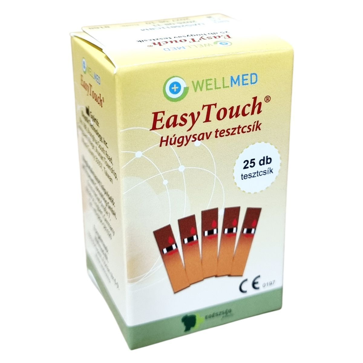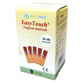 Az EasyTouch húgysav tesztcsík Wellmed márkanév alatt forgalmazott, önellenőrzésre szolgáló in vitro diagnosztikai eszköz. A termék 25 db EasyTouch húgysav tesztcsíkot és egy kód kártyát tartalmaz.