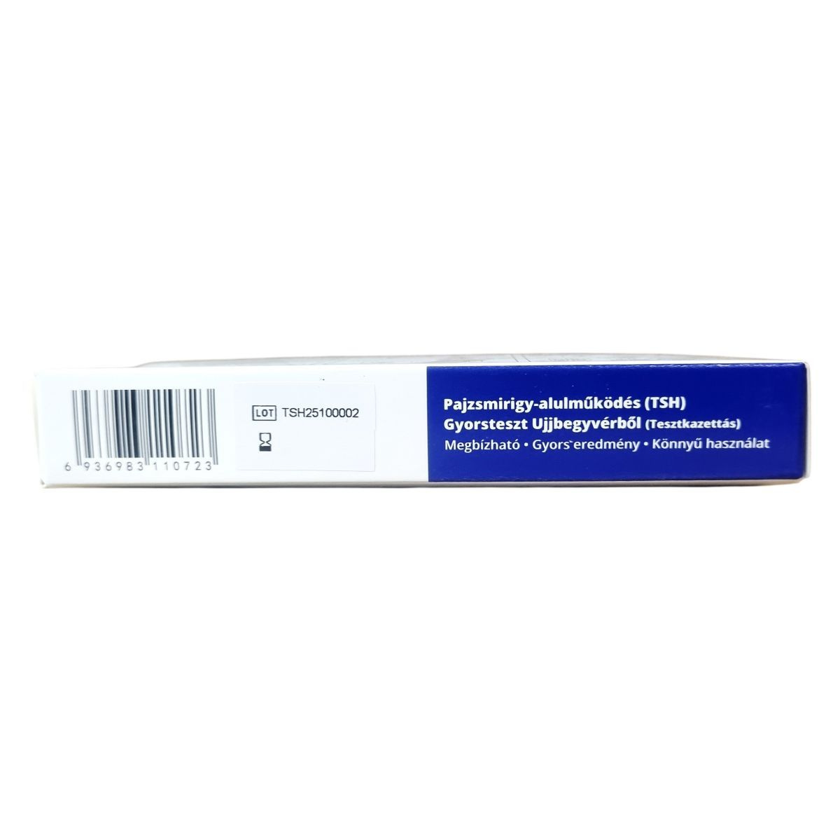 Gyors és egyszerű otthoni teszt a pajzsmirigy-alulműködés (TSH) szintjének meghatározására ujjbegyvérből, megbízható eredménnyel és könnyű használattal.