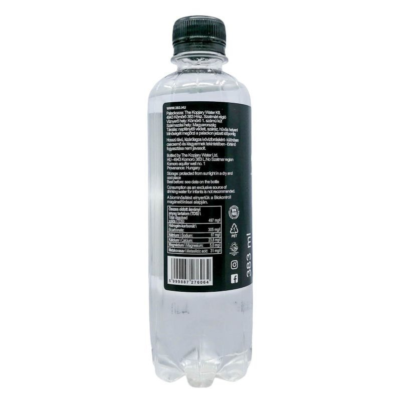 A 383 The Kopjary Water szén-dioxiddal dúsított ásványvíz egy különleges, természetes ásványvíz, amely a jégkorszak alatt kialakult forrásokból származik. Ez a víz a természet tisztaságát és sértetlenségét hordozza magában, amelyet a föld mélyéből nyert ásványi anyagok gazdagítanak. A szén-dioxid hozzáadása nemcsak frissítő ízt kölcsönöz a víznek, hanem élénkítő hatással is bír, így ideális választás lehet a mindennapi hidratálásra. A 383 ml-es kiszerelés praktikus, könnyen hordozható, így bármikor és bárhol élvezheti a frissítő ízét. A víz szénsavtartalma fokozza az élményt, és különösen népszerű választás lehet a szénsavas üdítők kedvelői számára, akik egészséges alternatívát keresnek. A 383 The Kopjary Water nemcsak ízletes, hanem a természetes ásványi anyagoknak köszönhetően jótékony hatással is bír a szervezetre. A víz tisztasága és frissessége garantálja, hogy minden korty egy igazi élvezet legyen, amely felfrissít és energikusabbá tesz.