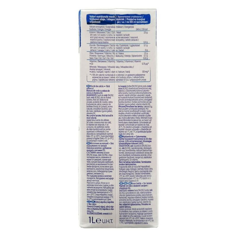 zab (ivóvíz, zab (8,7%)), napraforgóolaj, cikóriagyökérrost, borsófehérje, kalcium-karbonát, savanyúságot szabályozó, anyag (kálium-foszfátok), természetes aromák, emulgeálószer (lecitinek (napraforgó)), tengeri só, stabilizátor (gellángumi), D2-vitamin.