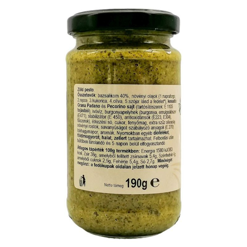 Csak hozzá kell keverni a tésztához, egy kis reszelt parmezán vagy pecorino sajttal megszórni és máris Olaszországban érezzük magunkat. Előszeretettel használják gnocchival. Ezen kívűl a zöld pesto használható levesek, kenyerek, pizza ízesítéséhez is. Összetevők: Bazsalikom 40%,