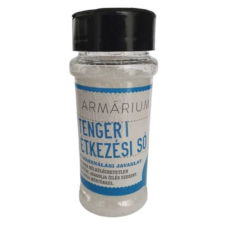 Szórófejes tengeri étkezési só 110g kiszerelésben, amely természetes ásványi anyagokkal gazdagítja az ételeket és egyszerűbbé teszi a fűszerezést.
