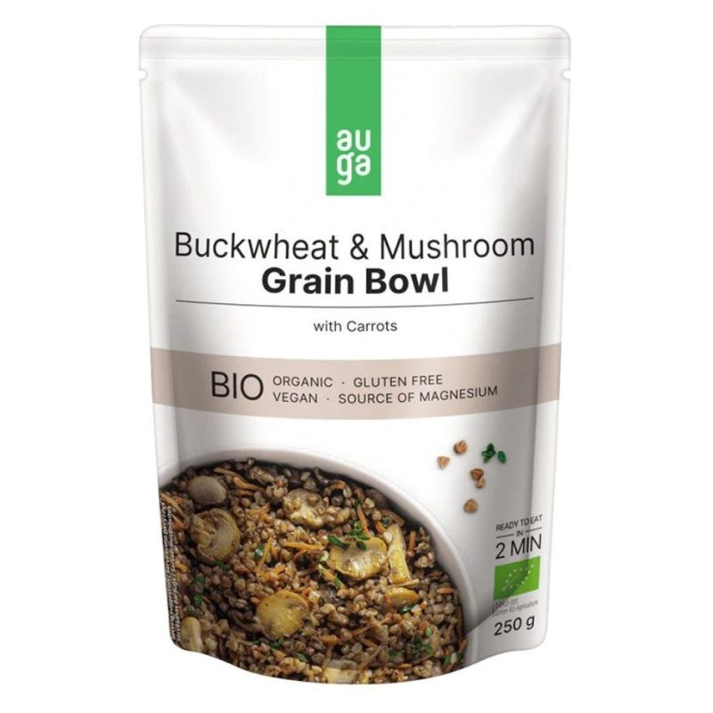 Az Auga Bio hajdina és gomba gabona tál répával tökéletes választás ha nincs idő főzni, de mégis egészségesen étkeznénk.