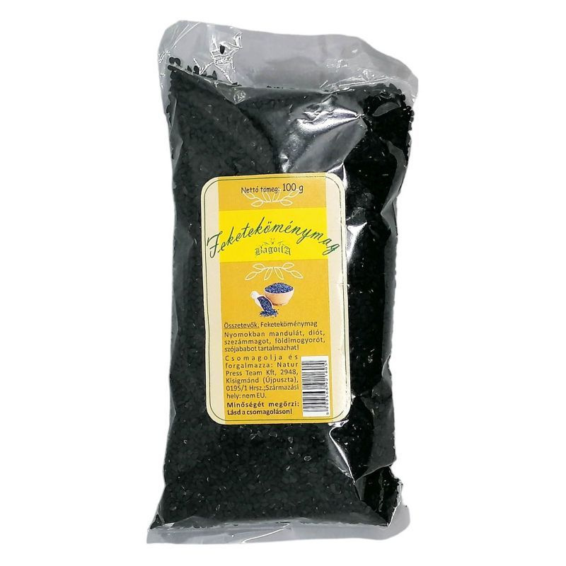 Egész feketeköménymag (Nigella sativa), amelyet fűszerként és teaként is használnak emésztés és légutak támogatására.