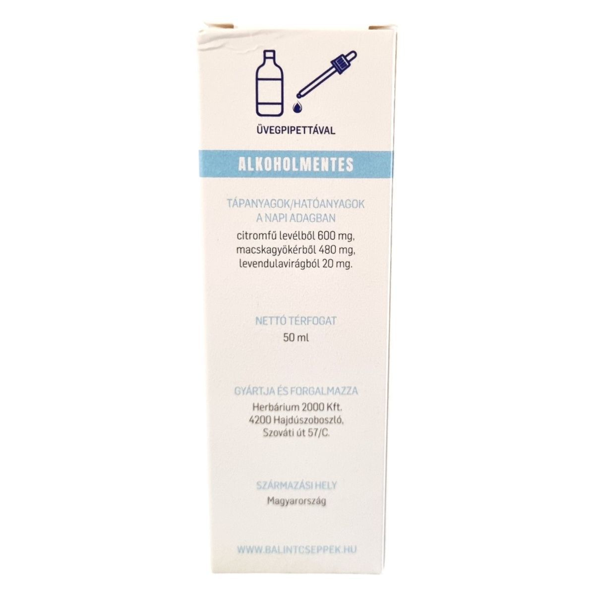 Az Idegeimre Mentek Cseppek egy alkoholmentes, növényi összetevőket tartalmazó étrend-kiegészítő, amely a citromfű, macskagyökér és levendulavirág hatóanyagaival segíthet a nyugalom és relaxáció támogatásában. A termék üledékessége nem befolyásolja a hatását. A készítmény 50 ml-es kiszerelésben kapható, és üvegpipettával adagolható. A termék Magyarországon készül, és a Herbárium 2000 Kft. gyártja és forgalmazza.