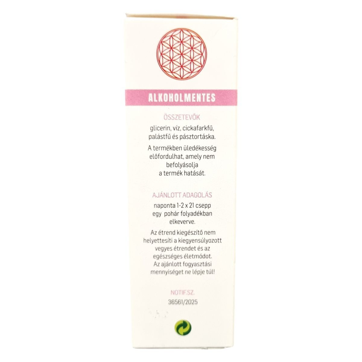 Alkoholmentes, folyékony, növényi összetevőket tartalmazó étrend-kiegészítő készítmény a hagyományos gyógynövény receptúrával.