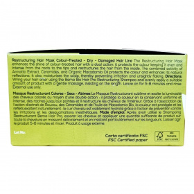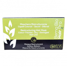 A BemaBio Hair Pro Struktúrajavító Hajpakolás kettős hatású formula, amely védi a színezett hajat, megőrizve annak fényét és színének intenzitását egységesen a haj teljes hosszában. Az annatto kivonat, ceramidok és bio makadámiaolaj kombinációja ápolja és hidratálja a fejbőrt, megelőzve az irritációt és a hámlást. A termék 80%-ban bioösszetevőkből készül, természetes eredetű összetevőinek aránya pedig 98,8%. Az energiaellátás megújuló forrásokból származik. Használata után a haj puha, fényes és egészséges megjelenésű lesz, miközben megőrzi a festett haj színének tartósságát és élénkségét.